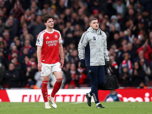 | Saliba và Rice đồng loạt rời sân, Arsenal trả giá đắt? | ||