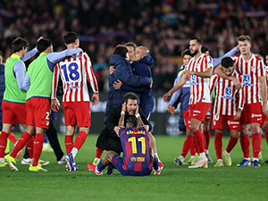 Thi đấu công thủ toàn diện, Barcelona đã có 1 màn trình diễn ấn tượng trong trận lượt về vòng bán kết cúp Nhà Vua trước Atletico Madrid và giành chiến thắng 3-0. Tuy nhiên, kết cục không diễn ra theo kịch bản như mơ với thầy trò Hansi Flick khi họ vẫn bị loại chung cuộc với tổng tỉ số 3-4. |