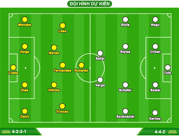 LỰC LƯỢNG - BỒ ĐÀO NHA: Vắng Joao Neves (chấn thương). - HUNGARY: Đầy đủ đội hình mạnh nhất. PHONG ĐỘ VÀ ĐỐI ĐẦU - Bồ Đào Nha toàn thắng cả 6 trận đấu gần nhất trên mọi đấu trường. - Hungary thắng 2, hòa 1 và thua 3 trong 6 trận đấu gần nhất. - Bồ Đào Nha thắng 5 và hòa 1 trong 6 lần chạm trán Hungary gần nhất. ![]() Bồ Đào Nha đang thể hiện phong độ rất cao và sáng cửa giành vé sớm dự VCK World Cup 2026 Cuối tuần trước, Cristiano Ronaldo đã đá hỏng phạt đền ở trận đấu với CH Ireland. Tuy nhiên, vào những phút bù giờ, Ruben Neves đã tỏa sáng, mang về chiến thắng tối thiểu 1-0 cho Bồ Đào Nha. Thắng lợi trên giúp Bồ Đào Nha củng cố vững chắc ngôi đầu bảng F vòng loại World Cup 2026 (khu vực châu Âu), với 9 điểm tuyệt đối sau 3 trận, hơn đội xếp thứ 2 (Hungary) 5 điểm. Trong bối cảnh chỉ còn 3 lượt trận phía trước, nếu đánh bại Hungary và Armenia không thể ca khúc khải hoàn trước CH Ireland, Seleccao sẽ chính thức giành tấm vé sớm tham dự VCK World Cup 2026. Trên thực tế, Bồ Đào Nha hội tụ đủ “thiên thời, địa lợi, nhân hòa” để hạ gục Hungary. Thầy trò HLV Roberto Martinez đang thể hiện phong độ ấn tượng khi toàn thắng cả 6 trận đấu gần nhất trên mọi đấu trường. Trong khi đó, Hungary chỉ thắng 2 và thua tới 3. Xét về kết quả đối đầu, Bồ Đào Nha cũng vượt trội rõ rệt so với đối thủ. Cụ thể, Seleccao từng chạm trán Magyar 15 lần trong lịch sử và chưa từng thất trận. Họ giành chiến thắng tới 11 lần trong số này. Về mặt lực lượng, Bồ Đào Nha rõ ràng nhỉnh hơn với dàn hảo thủ trải dài đều các tuyến như Ruben Dias, Nuno Mendes, Vitinha, Bruno Fernandes và đặc biệt là siêu sao Cristiano Ronaldo. ![]() Hungary luôn là "miếng mồi ngon" cho Bồ Đào Nha trong mỗi lần đối đầu Hungary không phải không sở hữu cầu thủ giỏi trong đội hình. Dẫu vậy, chỉ bộ đôi ngôi sao của Liverpool, Dominik Szoboszlai và Milos Kerkez là thực sự “nhớ mặt đặt tên” với các CĐV trung lập. 1 điều khích lệ cho Hungary là Roland Sallai và Barnabas Varga đã sẵn sàng ra sân sau án treo giò. Bộ đôi này đã ghi tổng cộng 26 bàn thắng cho ĐTQG. Sự trở lại của họ sẽ giúp Magyar tăng cường đáng kể sức mạnh hàng công. Cuối cùng, không thể không kể đến lợi thế sân nhà. Đây sẽ là điểm tựa vững chắc cho Bồ Đào Nha khi họ đã không thua sân nhà từ tháng 6 năm ngoái. Nếu thua Bồ Đào Nha, Hungary sẽ chính thức bị loại khỏi cuộc đua giành ngôi đầu bảng. Thậm chí, với khoảng cách mong manh 1 điểm so với đội xếp thứ 3 (Armenia), HLV Marco Rossi và các học trò hoàn toàn có thể tụt hạng. Trước đối thủ vượt trội hơn về mọi mặt, 1 kết quả hòa là mục tiêu thực tế nhất với Hungary. Với Bồ Đào Nha, ngay cả khi Armenia giành 3 điểm ở trận đấu cùng giờ, 1 chiến thắng cũng giúp họ sáng cửa đặt chân đến Bắc Mỹ vào mùa hè năm sau. DỰ ĐOÁN: Bồ Đào Nha thắng 2-0 ![]() LỊCH THI ĐẤU VÒNG LOẠI WORLD CUP 2026 KHU VỰC CHÂU ÂU