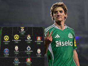 Ghi 4 bàn và giúp Newcastle chạm tay vào tấm vé vòng 1/8, Anthony Gordon là cái tên xứng đáng nhất lọt vào đội hình xuất sắc nhất lượt đi vòng play-off Champions League. |