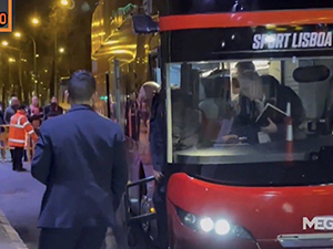 Không có mặt trên sân, HLV Jose Mourinho đã chỉ đạo và theo dõi trận Benfica thua Real Madrid ở lượt về vòng play-off Champions League từ xe bus của đội tại sân Bernabeu. |
