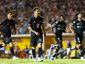 1 CĐV đã vô tình quật ngã Lionel Messi trong trận giao hữu của Inter Miami tại Bayamon, Puerto Rico. |
