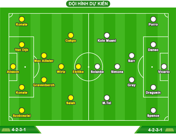 LỰC LƯỢNG - LIVERPOOL: Vắng Conor Bradley, Alexander Isak, Giovanni Leoni và Wataru Endo (chấn thương); Khả năng ra sân của Alisson Becker và Jeremie Frimpong còn bỏ ngỏ. - TOTTENHAM: Vắng Wilson Odobert, Rodrigo Bentancur, Lucas Bergvall, Ben Davies, Mohammed Kudus, Dejan Kulusevski, James Maddison, Destiny Udogie (chấn thương) và Micky van de Ven (treo giò); Khả năng ra sân của Joao Palhinha và Cristian Romero còn bỏ ngỏ. PHONG ĐỘ VÀ ĐỐI ĐẦU - Liverpool thắng 3/4 vòng đấu gần nhất ở Premier League (thắng 3, thua 1). - Tottenham chỉ biết hòa và thua ở 11 vòng đấu gần nhất thuộc Premier League (hòa 4, thua 7). - Liverpool thắng 6/7 màn chạm trán Tottenham gần nhất ở Premier League (thắng 6, thua 1). Ở lượt đi, Liverpool đã thắng 2-1 trên sân của Spurs. ![]() Mùa trước, Tottenham gây thất vọng lớn ở Premier League khi về đích ở vị trí thứ 17, đứng ngay phía trên nhóm cầm đèn đỏ. Mùa này, Spurs thậm chí còn tệ hơn bởi họ đang đứng trước nguy cơ xuống hạng. Đội bóng Bắc London có lí do để lo ngại bởi sau vòng 29, họ chỉ còn hơn nhóm cầm đèn đỏ vỏn vẹn 1 điểm. Màn trình diễn gây thất vọng buộc Tottenham phải sa thải HLV Thomas Frank. Nhưng sau khi bổ nhiệm HLV Igor Tudor, Spurs vẫn chưa tạo nên sức bật đáng kể nào. Chẳng bởi thế mà ở 3 vòng đấu vừa qua tại Premier League dưới sự dẫn dắt của Tudor, đội bóng Bắc London đều thất bại. Giữa tuần qua, Tottenham với tâm lí nặng nề tiếp tục gây thất vọng khi để thua Atletico Madrid với tỉ số 2-5 ở lượt đi vòng 1/8 Champions League. Để thua 6 trận liên tiếp trên mọi đấu trường, Spurs đã thiết lập chuỗi trận tệ nhất trong lịch sử. Tính riêng ở Premier League, Tottenham chỉ biết hòa và thua ở 11 vòng đấu gần nhất (hòa 4, thua 7). Lần gần nhất Spurs ca khúc khải hoàn ở sân chơi số 1 nước Anh là trận thắng Crystal Palace hồi cuối tháng 12 năm ngoái. Như thế đồng nghĩa Tottenham chưa biết mùi chiến thắng ở Premier League trong năm 2026. Theo truyền thông Anh, BLĐ Tottenham buộc phải tính tới phương án thay HLV trước tình cảnh khó khăn hiện tại. HLV Igor Tudor hiểu rằng ông có thể sẽ bị sa thải nếu Spurs tiếp tục gây thất vọng trong chuyến viếng thăm Anfield đêm nay. ![]() HLV Tudor có thể sẽ bị Tottenham sa thải sau vòng 30 EPL Với áp lực đè nặng, Tottenham buộc phải thể hiện tinh thần chiến đấu cao nhất. Tuy nhiên, rất khó để HLV Igor Tudor thay đổi tình hình bởi ngoài phong độ tệ hại, Tottenham vẫn đang khủng hoảng lực lượng. Trong khi Odobert, Bentancur, Bergvall, Davies, Kudus, Kulusevski, Maddison, Udogie chưa trở lại vì chấn thương, Spurs còn mất thêm Van de Ven vì án treo giò. Chưa kể, đội bóng Bắc London có thể mất thêm 2 nhân tố quan trọng khác ở trận đấu đêm nay vì chấn thương là Palhinha và Romero. Với đội hình chắp vá, không ai dám tin Tottenham có thể tạo nên sức bật trong chuyến viếng thăm Anfield đêm nay. Càng khó cho Spurs khi Liverpool đang rất cần chiến thắng để đua top 4. Với 48 điểm, Liverpool đang đứng thứ 6 trên BXH Premier League. Ở loạt trận sớm vòng 30, Chelsea đã để thua Newcastle. Tối nay, M.U và Aston Villa sẽ chạm trán trực tiếp ở vòng 30. Điêu đó đồng nghĩa nếu đánh bại Tottenham, thầy trò Arne Slot sẽ có cơ hội trở lại vị trí thứ 4 trên BXH. Họ hiện chỉ kém M.U và Aston Villa vỏn vẹn 3 điểm. Liverpool vừa bất ngờ để thua Wolves ở vòng 29. Nhưng so với Tottenham, The Reds thể hiện phong độ tốt hơn rất nhiều. Đặc biệt, ở trận chiến đêm nay, thầy trò Arne Slot được chơi trên sân nhà Anfield. ![]() Liverpool đã thắng 6/7 màn chạm trán Tottenham gần nhất ở Premier League Theo thống kê, Liverpool chỉ để thua 1/31 màn tiếp đón Tottenham gần nhất ở Premier League (thắng 29, hòa 9, thua 1). Từ năm 2011 tới nay, The Reds không thua trong cả 14 màn tiếp đón Spurs (thắng 10, hòa 4). Tính cả chiến thắng 2-1 ở lượt đi, Liverpool đã thắng 6/7 màn chạm trán Tottenham gần nhất ở sân chơi số 1 nước Anh. Đây là cơ sở để thầy trò Arne Slot tin tưởng mục tiêu 3 điểm ở trận đấu đêm nay. Đó có thể sẽ là dấu chấm hết cho HLV Igor Tudor. DỰ ĐOÁN: Liverpool thắng 2-1 ![]() KẾT QUẢ VÀ LỊCH THI ĐẤU VÒNG 30 PREMIER LEAGUE