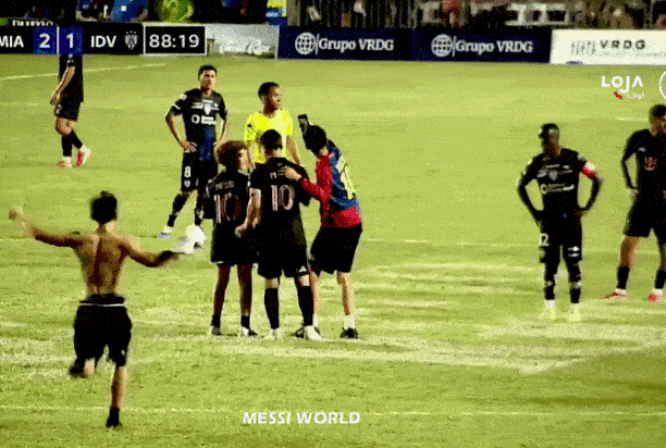 1 nhân viên an ninh đã vô tình quật ngã Lionel Messi trong trận giao hữu của Inter Miami tại Bayamon, Puerto Rico. |