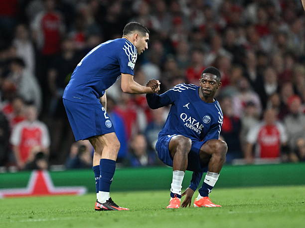 Sau khi ghi bàn thắng duy nhất mang về chiến thắng cho PSG, tiền đạo Ousmane Dembele đã phải rời sân vì chấn thương. |