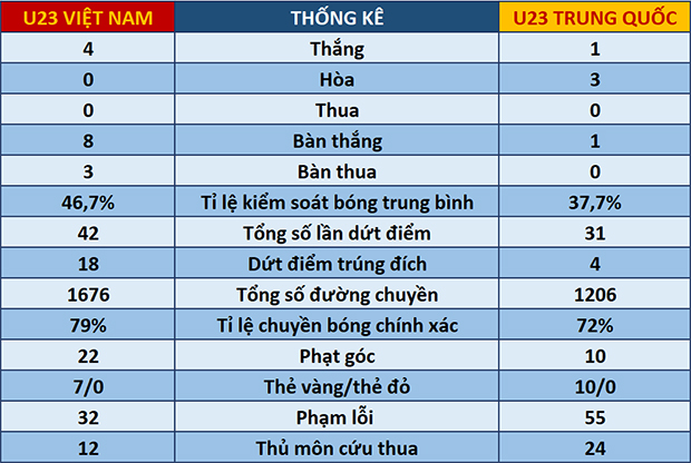 | So sánh: U23 Việt Nam áp đảo U23 Trung Quốc | ||