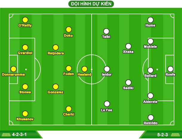![]() LỰC LƯỢNG - MAN CITY: Vắng Rodri và Mateo Kovacic (chấn thương). - SUNDERLAND: Vắng Habib Diarra, Dennis Cirkin, Leo Hjelde và Aji Alese (chấn thương). PHONG ĐỘ VÀ ĐỐI ĐẦU - Man City thắng 4 và thua 1 trong 5 trận đấu gần nhất ở Premier League. - Sunderland thắng 1, hòa 3 và thua 1 trong 5 trận đấu gần nhất ở Premier League. - Man City toàn thắng trong 5 lần đối đầu Sunderland gần nhất ở Premier League. ![]() LỊCH THI ĐẤU VÒNG 15 PREMIER LEAGUE