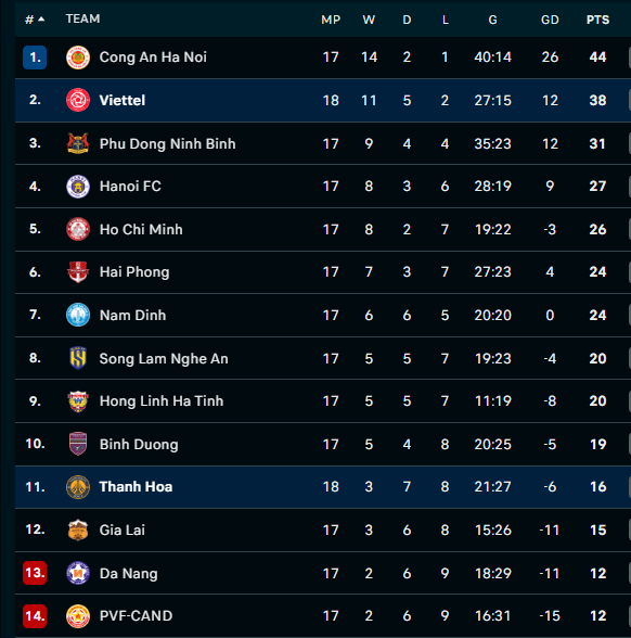Tối nay (10/4) đã diễn ra trận đấu sớm nhất vòng 18 V-League giữa Thể công Viettel và Thanh Hóa. Cả 2 đội đều cần 3 điểm để phục vụ mục tiêu riêng. Đội bóng quân đội đang bám đuổi CA Hà Nội trong cuộc đua vô địch, còn Thanh Hóa đang chạy đua trụ hạng.