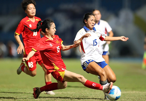 Tinh thần ấy đã được ĐT nữ Việt Nam thể hiện ngay sau tiếng còi khai cuộc với lối chơi tấn công chủ động. Nhưng với lối chơi giàu thể lực, nữ Philippines đã gây nhiều khó khăn cho đoàn quân áo đỏ. Hiệp 1 của trận chung kết đã bị đẩy vào thế trận giằng co.