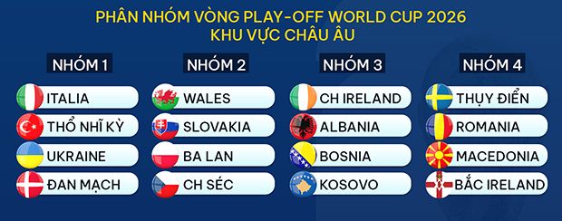 ![]() Thầy trò Gattuso được xếp vào nhóm hạt giống số 1 ở vòng play-off Sau loạt trận hạ màn rạng sáng nay, LĐBĐ châu Âu (UEFA) đã xác định đầy đủ 16 đội tuyển tham dự vòng play-off tranh 4 vé vớt World Cup 2026. Trong số 16 đội tuyển, đáng chú ý nhất là sự góp mặt của Italia, đội bóng từng 4 lần giành cúp vàng thế giới. Đây là lần thứ 3 liên tiếp Italia phải tham dự vòng play-off World Cup. Ở 2 lần trước, Azzurri đều thất bại và phải ngồi nhà theo dõi World Cup. Trong số 16 đội tuyển tham dự vòng play-off, có 12 đội tuyển góp mặt với tư cách nhì bảng ở vòng loại là Slovakia, Kosovo, Đan Mạch, Ukraine, Thổ Nhĩ Kỳ, CH Ireland, Ba Lan, Bosnia & Herzegovina, Italia, Wales, Albania và CH Séc. 4 đội tuyển còn lại góp mặt nhờ thứ hạng ở Nations League 2024-25 gồm Romania, Thụy Điển, Bắc Macedonia và Bắc Ireland. Theo thể thức của UEFA, 16 đội tuyển tham dự vòng play-off sẽ được chia làm 4 nhóm tranh 4 vé (mỗi nhóm 4 đội). Mỗi nhóm sẽ thi đấu theo thể thức knock-out, gồm 2 trận bán kết và 1 trận chung kết. Trước khi bốc thăm phân nhóm và phân cặp vòng play-off, UEFA sẽ chia 16 đội tuyển vào 4 nhóm hạt giống. 3 nhóm đầu tiên được xếp hạng dựa trên BXH FIFA. Nhóm số 4 sẽ gồm 4 đội tuyển tham dự nhờ thành tích ở Nations League gồm Romania, Thụy Điển, Bắc Macedonia và Bắc Ireland. Là đội tuyển có thứ hạng tốt nhất trên BXH FIFA nên Italia được xếp vào nhóm 1 cùng Thổ Nhĩ Kỳ, Ukraine và Đan Mạch. Trong khi đó, Wales nằm ở nhóm 2 cùng Slovakia, Ba Lan và CH Séc. Nhóm 3 có sự góp mặt của CH Ireland, Albania, Bosnia & Herzegovina và Kosovo. Do nằm ở nhóm hạt giống số 1 nên Italia được ưu tiên đá trận bán kết tại sân nhà. Ngoài ra, theo quy định, họ sẽ gặp đối thủ thuộc nhóm 4 ở bán kết. Các đội bóng thuộc nhóm 2 sẽ gặp đội nhóm 3 ở bán kết. ![]() Italia có thể tái ngộ Thụy Điển hoặc Bắc Macedonia ở bán kết play-off Điều khá thú vị là ngay ở vòng bán kết play-off, Italia có thể tái ngộ Thụy Điển hoặc Bắc Macedonia. Đây chính là 2 đội tuyển đã khiến đoàn quân áo thiên thanh thất bại ở 2 vòng play-off World Cup gần nhất. Cụ thể, ở vòng play-off World Cup 2018, Italia đã để thua Thụy Điển với tổng tỉ số 0-1 sau 2 lượt trận. Tới vòng play-off World Cup 2022, đoàn quân áo thiên thanh lại để thua Bắc Macedonia với tỉ số 0-1 ở bán kết. Sẽ rất thú vị nếu Italia gặp lại Thụy Điển hoặc Bắc Macedonia ở vòng bán kết play-off. Ngay cả khi vượt qua vòng bán kết, Azzurri cũng đối mặt nhiều thử thách ở chung kết, đặc biệt là các đối thủ đáng gờm ở nhóm 2 như Wales, Slovakia, Ba Lan hay CH Séc. LĐBĐ châu Âu (UEFA) sẽ tổ chức bốc thăm chia nhóm và phân cặp vòng play-off World Cup 2026 vào chiều tối mai (20/11). Vòng play-off sẽ được tổ chức theo thể thức 1 trận loại trực tiếp, dự kiến sẽ diễn ra vào tháng 3 năm sau. ![]() |